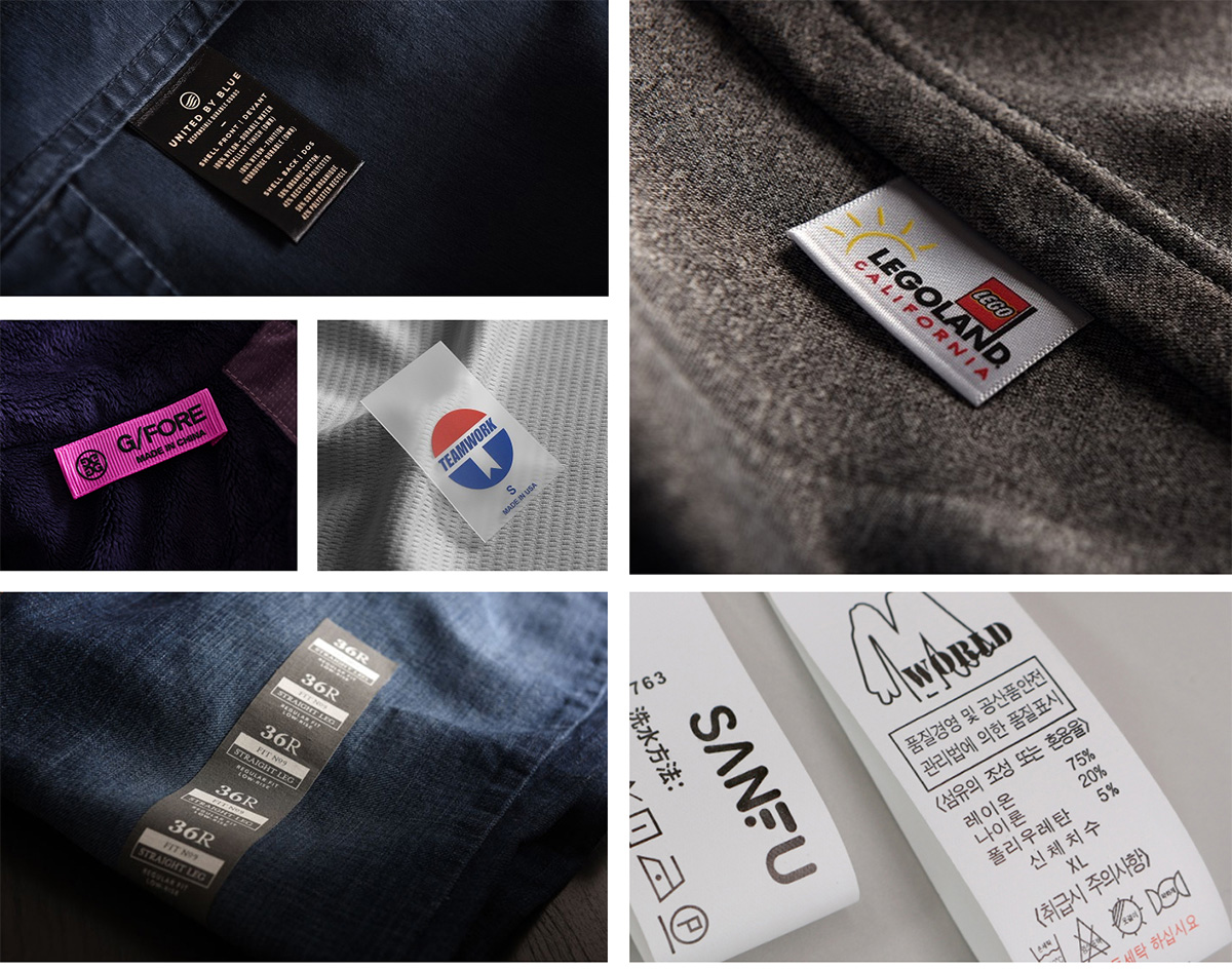 The classification of clothing weaving labels by application field mainly includes: clothing collar label, clothing main label, side label, size label, origin label, pocket label, sleeve label, washing label, name weaving label, luggage and handbag weaving label, bedding weaving label, fabric label, etc.